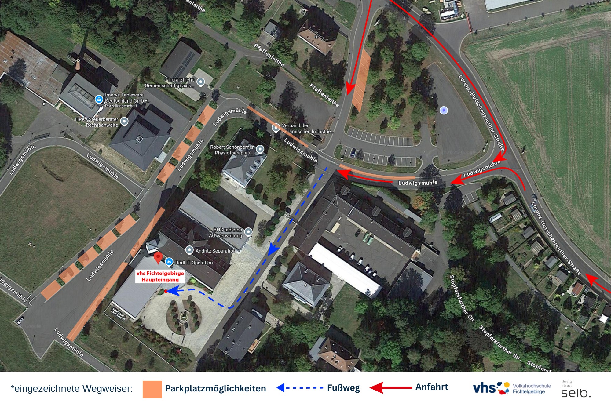 Besucher werden gebeten, ausschließlich die öffentlichen Parkplätze rund um die Ludwigsmühle zu nutzen. Firmeneigene Stellplätze der umliegenden Unternehmen sowie alle Flächen im Innenhof des Gebäudekomplexes stehen nicht als Parkmöglichkeiten zur Verfügung.